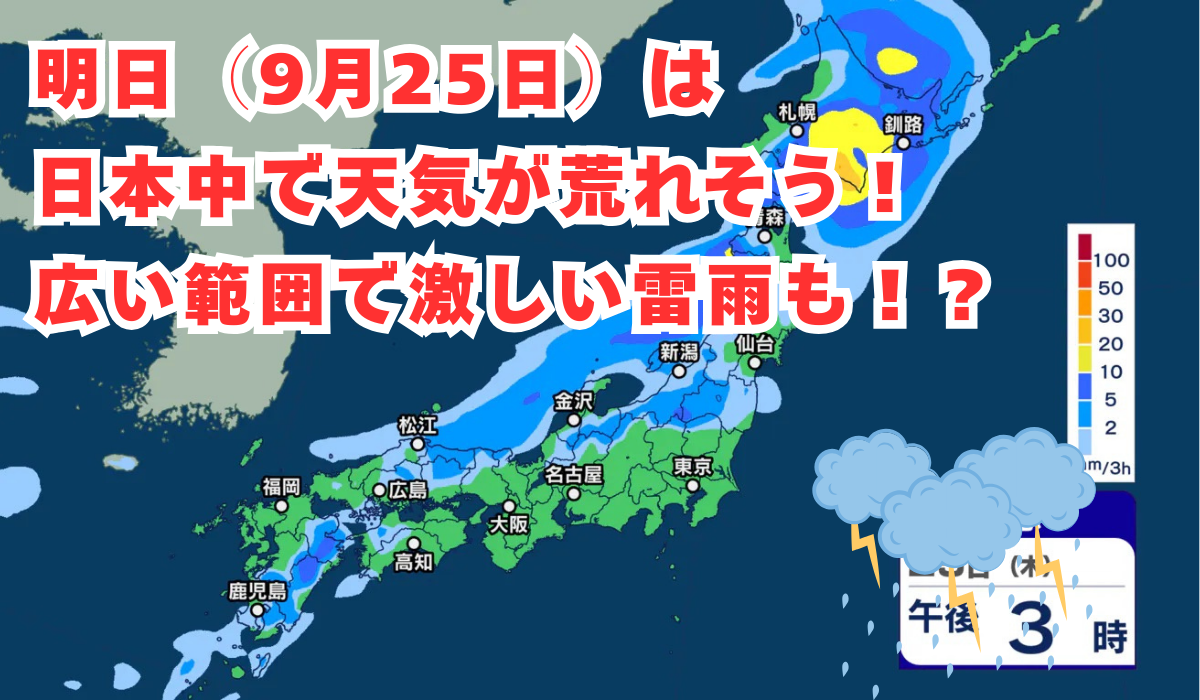 明日(9月25日)は日本中で天気が荒れそう!広い範囲で激しい雷雨も!?