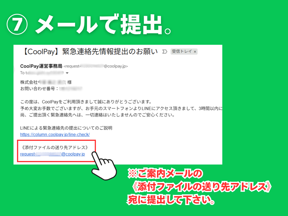 そのような場合において、査定結果を加点する為の方法として「LINEによる緊急連絡先の提出」をお願いしています。